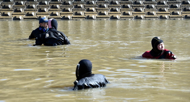 10일 오후 경기도 평택시 포승읍 피해자의 거주지 인근 수로에서 경찰대원들이 평택 예비 초등생의 소재를 파악하기 위해 수색 작전 펼치고 있다