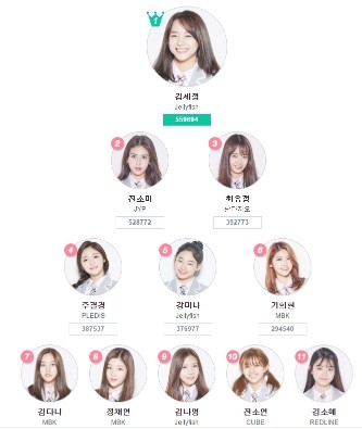 프로듀스 101 전체 1위는 김세정이 차지했다.