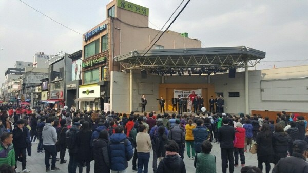 12일 오후 강원도 원주시 중앙시장에서 '로드FC와 함께하는 전통시장 살리기' 캠페인이 진행됐다. 이날 캠페인에는 로드FC 정문홍 대표, 박상민 부대표, '테크노 골리앗' 최홍만, 배우 김보성, 로드걸 최슬기 공민서 임지우가 함께해 시민들의 호응을 이끌어냈다.