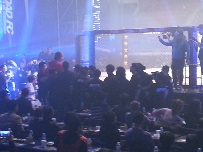 최홍만은 흥분을 가라앉히지 못해 결국 대회 주최측은 최홍만에게 퇴장 명령을 내렸고 최홍만은 로드FC 관계자와 함께 경기장을 나갔다. 순조롭게 경기가 진행되던 중 벌어진 갑작스러운 일이었다.