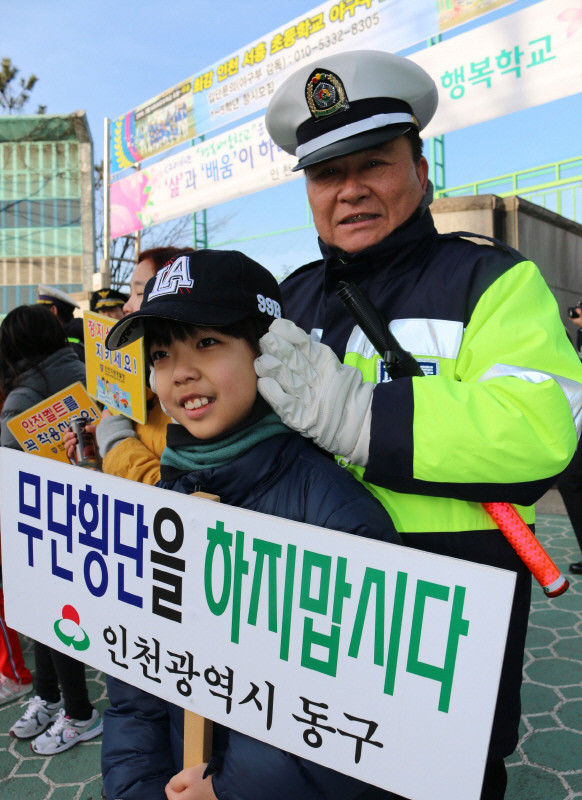 최근 인천중부경찰서는 인천 동구 서흥초등학교에서 교통안전계, 여성청소년계, 동구청 교통과, 중부녹색어머니회, 모범운전자회 등 70명과 서흥초등학교장 및 학생들이 참석한 가운데 '안전한 통학로 만들기' 캠페인을 실시했다.(사진제공=중부경찰서)