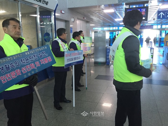최근 경기 의정부시는 회룡역사내 3층에서 안전교통건설국 공무원 등 40여명이 참여한 가운데 안전문화 진흥을 위한 제240차 안전점검의 날 홍보 캠페인을 전개했다.(사진제공=의정부시청)
