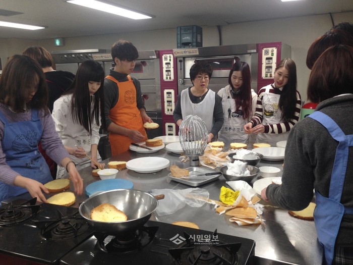 | ▲ 청소년들의 적성 개발을 도모하고자 마련된 제과제빵 교육에서 학생들이 케이크를 만들고 있다. | ||