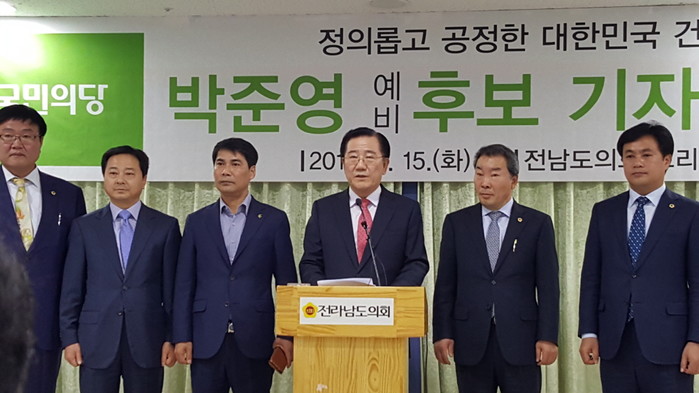 [신안=황승순 기자]전 민주당 공동대표였던 박준영(영암무안신안)예비후보가 15일 전남도의회 기자프리핑룸에서 지지자들과 함께 국민의당 평당원으로 공식 입당에 따른 입장을 밝혔다.