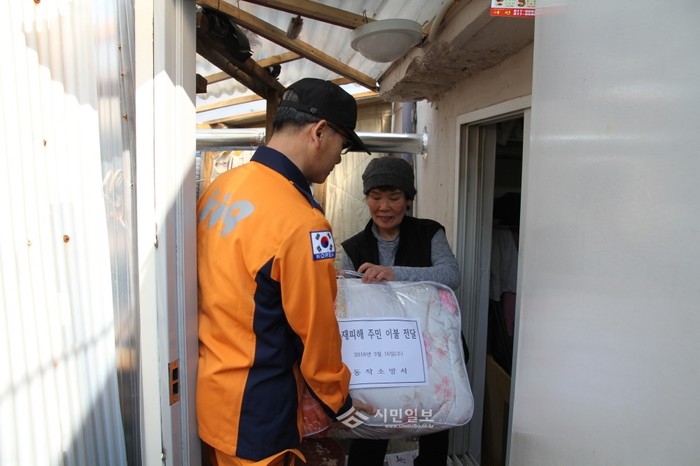 동작소방서, 저소득층 화재피해가정 이불 전달