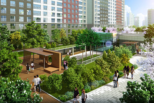 커뮤니티 크기는 1689㎡로 단지 중앙의 선큰가든, 야생화정원, 가족숲정원 등이 위치해 있고 피트니스센터와 골프연습장, 작은도서관, 주민카페도 들어선다.