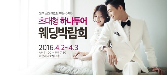 이번 대구웨딩박람회는 라온제나호텔에서 오는 4월 2일 (토요일) ~ 4월 3일 (일요일) 까지 진행된다. 미리 사전참가 신청 후 방문할 경우 고급 스타벅스 텀블러, 커플 마사지권 등의 사은품이 제공된다.