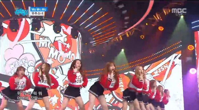 우주소녀가 19일 오후 3시 40분에 방송된 MBC '음악중심'에 출연해 '모모모'의 무대를 나타냈다.