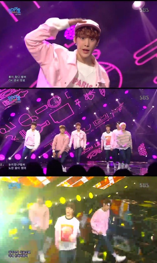 20일 오후 방송된 SBS '인기가요'에 출연한 아스트로는 '숨바꼭질'로 무대를 선보였다.