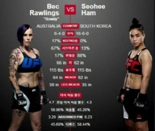 한편 함서희는 20일(한국시각) 호주 퀸즐랜드주 브리즈번 엔터테인먼트에서 열린 'UFC Fight Night 85'에서 호주의 벡 롤링스에 아쉽게 패배해 안타까움을 자아냈다.