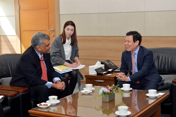 | ▲ 마힌드라 코리아 사장(좌)을 접견하고 있는 윤장현 광주광역시장(사진 우측) | ||