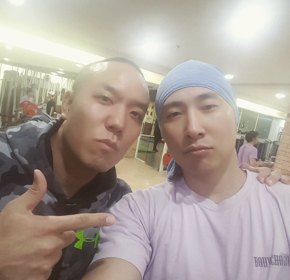 사진 속에서 라이머와 숀리는 헬스장에서 어깨동무를 하며 우애를 보여주고 있다.