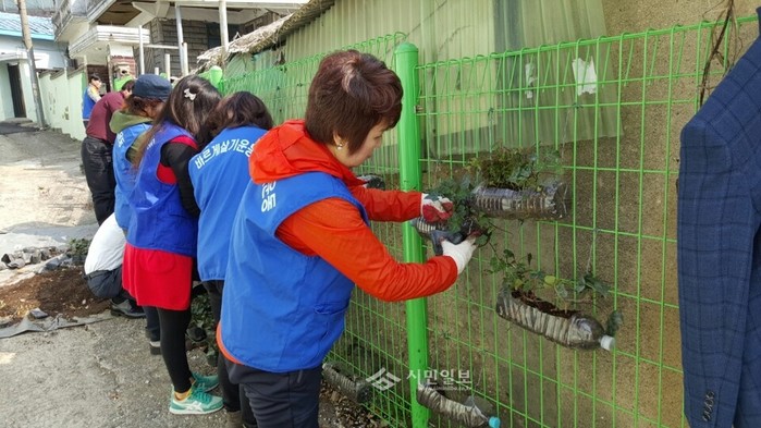 지난 21일 경기 수원시 팔달구 지동 주민센터에서는 ‘2016 수원화성방문의 해’의 성공적인 개최와 관광객들에게 깨끗한 지동이미지를 선사하고자 ‘시장가는 정겨운 골목길’내 ‘행복꽃길’을 새롭게 조성했다. 사진은 관계자들이 꽃길을 단장하는 모습.(사진제공=팔달구청)