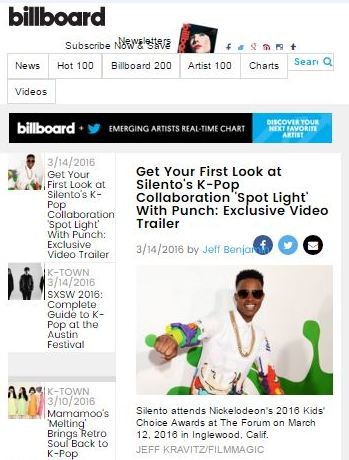 이와 함께 빌보드닷컴은 14일(한국시간) 용감한형제와 사일렌토, 펀치의 콜라보레이션을 소개하는 글을 게재한 바 있다.