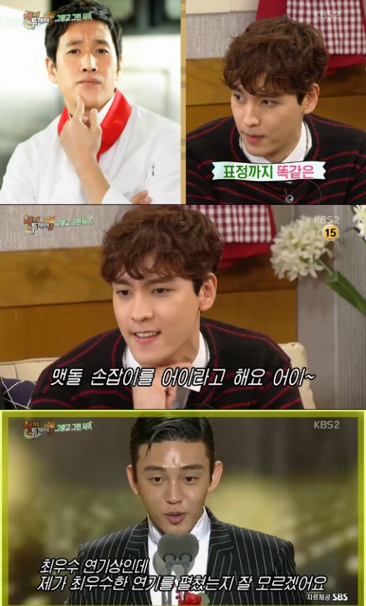 그러자 최태준은 손으로 목을 떨면서 “유아인의 연기는 조금 과장을 해야 한다”라며 유아인의 "어이가 없네"와 시상식에서 수상소감을 한 모습을 그대로 따라했다.