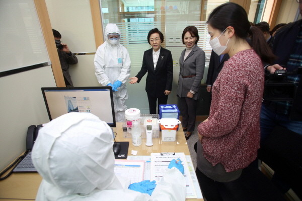 최근 서울 강남구는 감염병으로부터 구민의 생명과 건강을 보호하기 위해 음압 진료실을 개소했다. 사진은 진료실을 방문한 신연희 구청장(가운데)이 시설을 둘러보는 모습.(사진제공=강남구청)