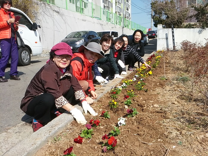 인천시 산곡1동 주민센터, 새봄맞이 도로변 봄꽃 심기