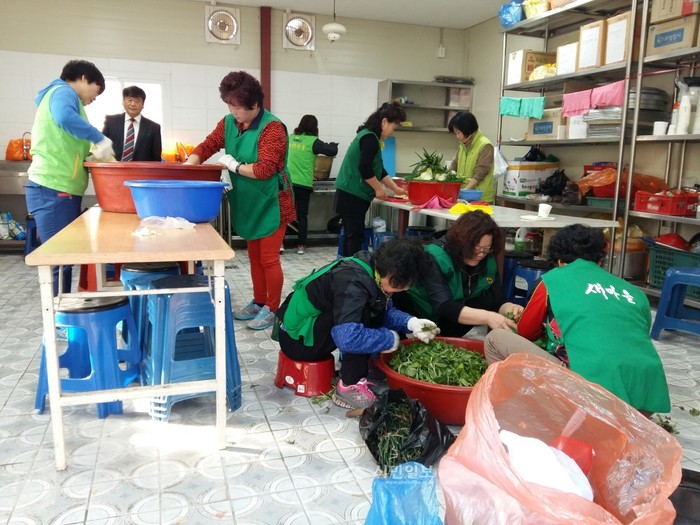 지난 25일 경기 동두천시 소요동 새마을부녀회에서는 ‘사랑의 밑반찬’을 만들어 저소득층 홀몸 노인 25가구를 방문해 전달했다. 사진은 행사에 참석한 관계자들이 음식을 만드는 모습.(사진제공=동두천시청)