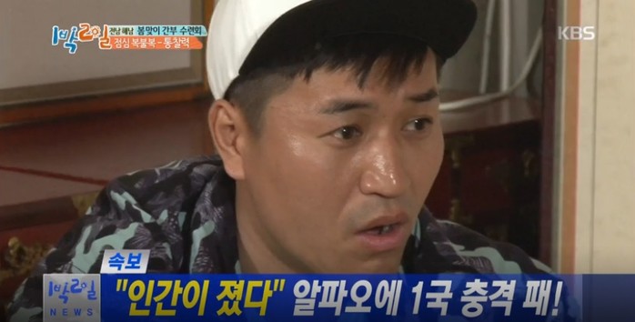 지난 27일 오후 방송된 KBS2 예능프로그램 '해피선데이-1박 2일 시즌3'(이하 '1박 2일')에서는 멤버들과 알파오의 오목대결이 그려졌다. 호기롭게 도전장을 내민 출연자들은 정준영부터 시작해,차태편,데프콘이 알파오에게 잇따라 패배했다.