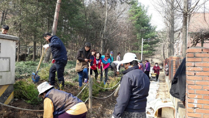 최근 안산시 선부1동 주민센터는 봄을 맞아 도시 숲 만들기 행사의 일환으로 담장 밑 쌈지화단과 관산공원 등산로 입구 유휴지 주변을 정리하고 영산홍, 화양목 등 꽃 1100포기를 심는 식목행사를 실시했다. 사진은 관계자들이 화단을 정리하고 있는 모습.(사진제공=안산시청)