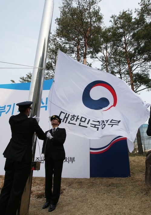 행자부는 이날 정부세종청사와 서울청사 등 10개 정부청사에서 태극 문양이 담긴 새 정부기를 게양했다.