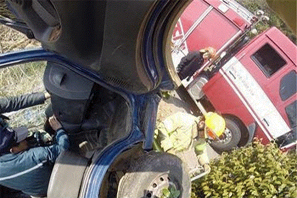 | ▲ 졸음운전으로 전복된 차량(강진소방서 제공) | ||