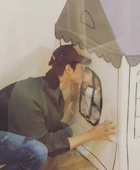 공개된 사진 속에서 유지태는 작은 텐트 속에 들어가 있던 아들과 뽀뽀를 하고 있다. 특히 언뜻 보이는 김효진과 유지태의 아들은 귀여운 외모로 눈길을 끌었고 유지태의 행동은 팬들의 부러움을 자아냈다.