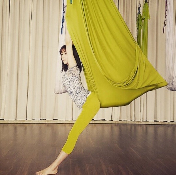 사진 속 강예원은 플라잉요가를 선보이고 있다. 고난이도 동작이지만 흐트러짐 없는 자세와 여유로운 표정은 보는 이들을 감탄케 했다.