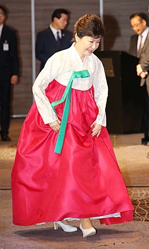 박근혜 대통령이 2일 오후(현지시간) 멕시코시티에서 열린 멕시코 동포간담회에서 인사말을 하기 위해 단상으로 나가고 있다.
