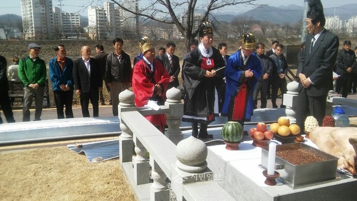 최근 경기 가평군 가평읍사무소는 보납산 가평읍민안녕산천제단에서 지역내 기관·사회단체장, 이장, 새마을관계자 주민 등 100여명이 참석한 가운데 읍민의 화합과 안녕, 번영을 기원하는 제7회 가평읍민 안녕기원제를 봉행했다. 사진은 관계자들이 제사를 진행하고 있는 모습.(사진제공=가평군청)