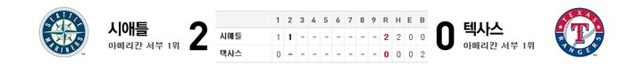 경기는 2회초 현재 로빈슨 카노와 코리 시거의 홈런 2방을 앞세운 시애틀 매리너스가 2-0으로 리드하고 있다.