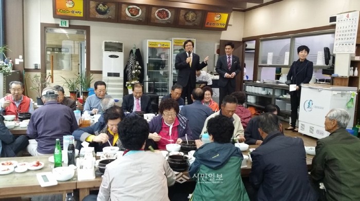 지난 4일 경북 구미시 인동동 소재 대가야삼계탕은 지역내 노인 120여명에게 봄철 건강회복을 위한 삼계탕 및 과일, 떡 등을 마련해 점심식사를 대접하는 봉사활동을 실시했다. 사진은 관계자들이 점심식사를 하고 있는 모습.(사진제공=구미시청)