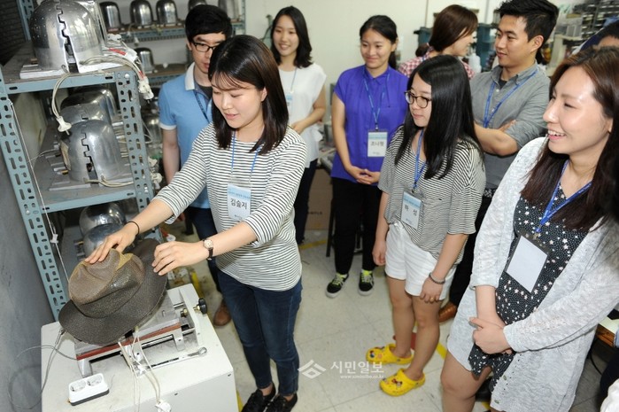 | ▲ 지난해 구에서 운영한 섬유무역마스터 양성과정 참가자들이 지역내 섬유 기업을 방문해 기업 관계자에게 설명을 듣고 있다. | ||