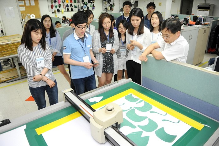 | ▲ 섬유 무역기업 현장을 방문한 섬유무역마스터 양성과정 참가자들이 실습을 진행하고 있다. | ||