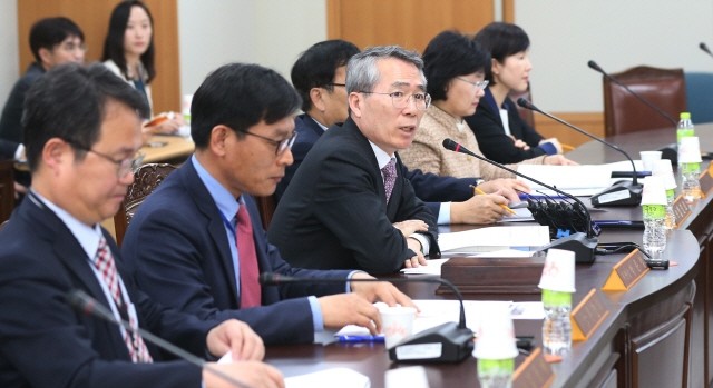 [=연합뉴스 기자]박준성 최저임금위원회 위원장이 7일 오전 정부세종청사 고용노동부에서 열린 제1차 전원회의에서 인사말을 하고 있다.