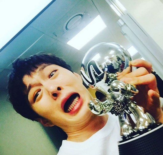 8일 오전 이창섭은 “어제도 오늘도 내일도 시랑합니다 멜로디”라는 글과 함께 자신의 ‘셀카’를 게재했다, 사진 속 이창섭은 트로피를 들고서 카메라를 응시하고 있다.