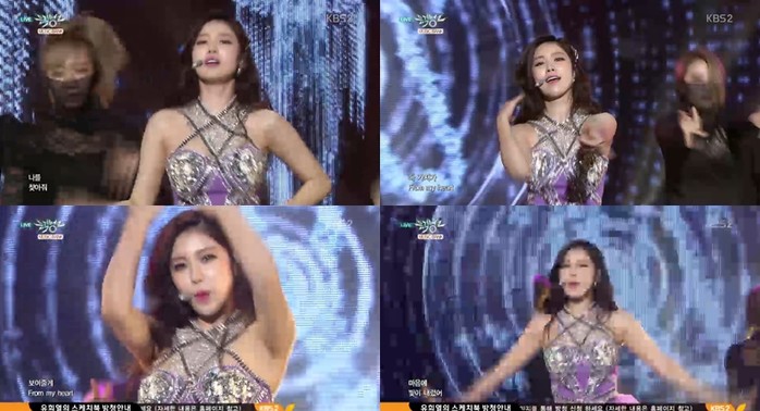 전효성은 화려한 비즈로 장식된 의상을 입고 무대에 올랐다. 특유의 섹시한 보컬에 시선을 압도하는 눈빛을 발산하며 무대를 압도했다.