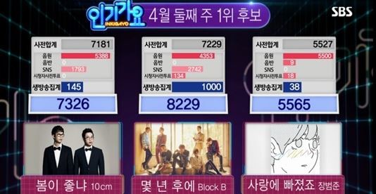 10일 오후 방송된 SBS '인기가요'에서 블락비가 '몇 년 후에'로 1위를 차지했다. 이날 블락비는 일본 스케줄로 인해 방송에는 참석하지 못했다.