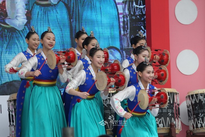 지난 9일 금천구 구청 광장에서 1000인의 오케스트라와 합창이 함께하는 '봄의 소리 대향연'을 개최했다. 사진은 국립전통예고 학생들이 개막전 공연을 하는 모습.(사진제공=금천구청)