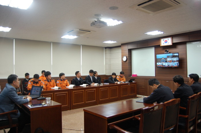 11일 경기 안성소방서는 회의실에서 건전하고 청렴한 소방조직문화 정착과 활기찬 직장분위기를 조성하고자 찾아가는 청렴윤리교실을 실시했다. 사진은 행사에 참석한 관계자들이 회의하는 모습.(사진제공=안성소방서)