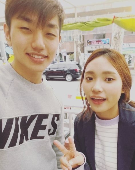 공개된 사진 속 샘 김은 이진아와 월등한 키 차이를 선보이며 훈훈한 비주얼로 팬들의 시선을 사로 잡았다.