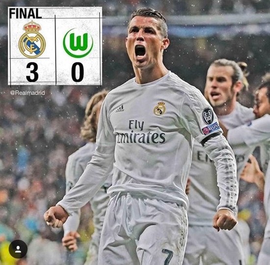레알 마드리드는 호날두가 또 다시 쐐기골을 넣으며 헤트트릭을 기록했다. 후반 31분 호날두가 페널티라인 근처에서 날카로운 프리킥을 날리면서 볼이 수비벽 사이를 통과하며 골문 안으로 들어갔다. 이로 인해 레알 마드리드는 볼프스부르크를 상대로 3-0 완승을 거두면서 4강 진출에 성공했다.