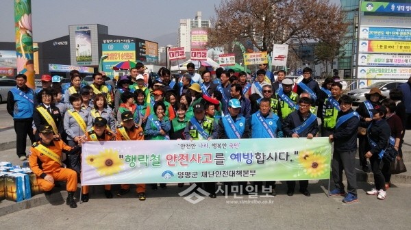 최근 경기 양평군은 군민의 안전의식을 높이고 생활주변 안전관리 강화를 위한 '제241차 안전점검의 날 캠페인'을 양평물맑은시장내 라온광장에서 실시했다. 사진은 행사 참가자들이 기념촬영을 하는 모습.(사진제공=양평군청)