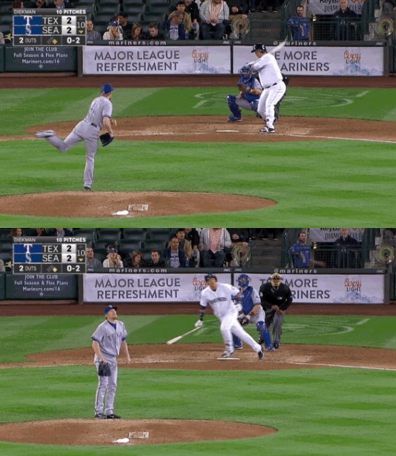 이대호는 이날 애덤 린드에게 선발 자리를 양보해 텍사스의 좌완불펜 제이크 디크먼을 상대로 대타 출전했다. 그는 디크먼의 시속 97마일 강속구를 담장 밖으로 넘겼다.