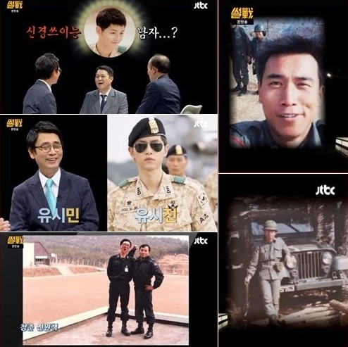 JTBC 예능프로그램 ‘썰전’에서는 최근 인기를 모은 KBS2 수목드라마 ‘태양의후예’ 속 송중기에 대한 이야기를 나눴다.