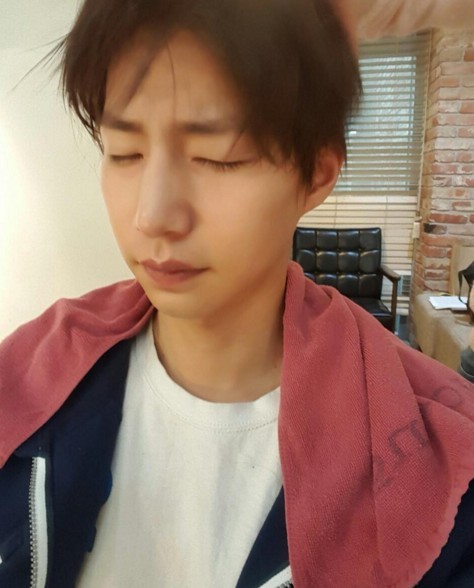 게재된 사진 속 그는 막 일어난 듯한 부스스한 모습으로 눈을 감고 있다.