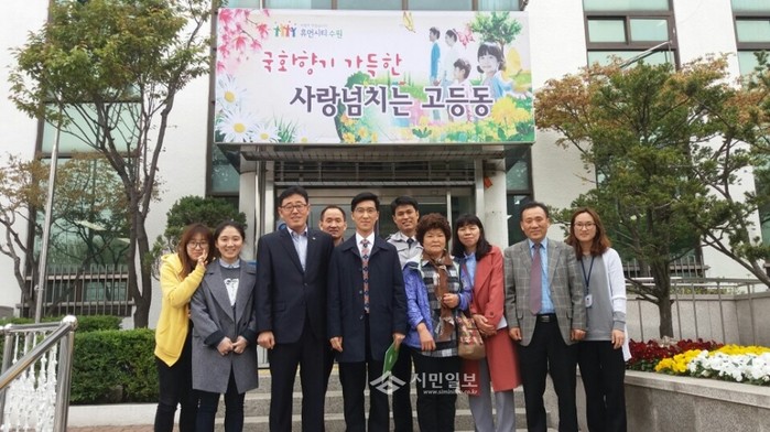 14일 경기 수원시 팔달구 고등동 주민복지협의체에서 정기회의를 개최했다. 사진은 회의에 참석한 관계자들이 기념촬영을 하는 모습.(사진제공=팔달구청)