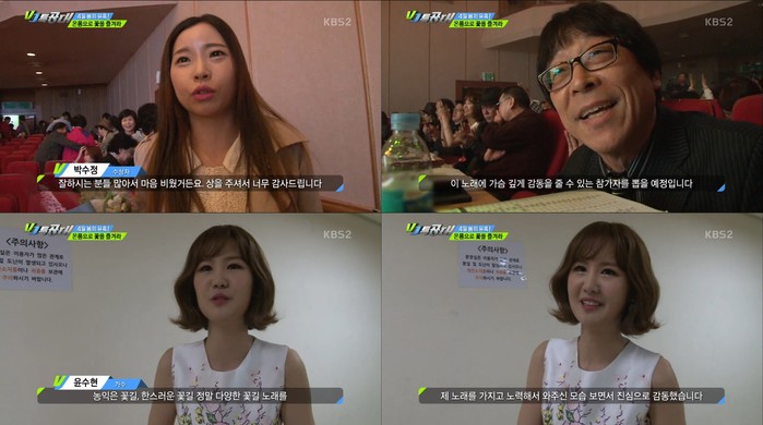 15일 오후 방송된 KBS2 'VJ 특공대'에서는 봄 하면 빠질 수 없는 봄꽃 노래 경연대회를 소개하는 장면이 전파를 탔다.