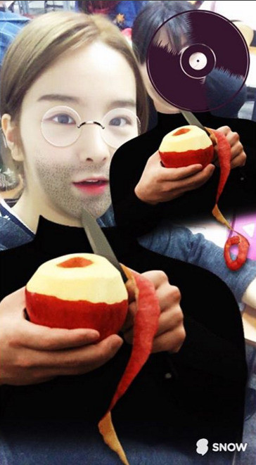 공개된 사진속 송소희는 모바일 셀프카메라 어플을 이용해 스티브잡스로 변신해 시선을 사로잡고 있다. 그는 스티브잡스 처럼 동그란 무테 안경과 검은 터틀넥 스웨터를 입고 있고, 귀여운 얼굴이 시선을 끈다.
