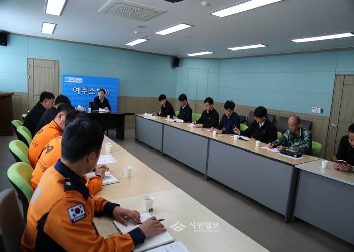 18일 경기 여주소방서는 청렴문화 정착으로 신뢰받는 소방행정 구현을 위한 및 부서별 대표자 회의를 개최했다. 사진은 소방서 관계자들이 회의하는 모습.(사진제공=여주소방서)